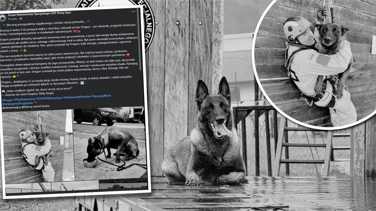 Wspólnota ratowników w Polsce pogrąża się w smutku. W wieku zaledwie sześciu lat, po walce z chorobą, odszedł Dragon – wyjątkowy pies ratownik z Grupy Ratownictwa Specjalnego Ochotniczej Straży Pożarnej w Nowym Sączu. Jego przedwczesna śmierć to ogromna strata nie tylko dla jego opiekunów i przewodników, ale dla całego środowiska ratowniczego, które doceniało jego oddanie i skuteczność.